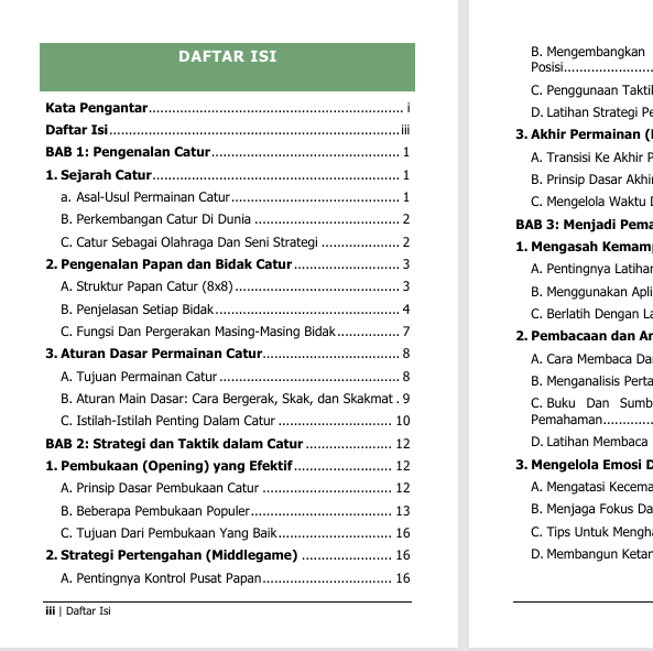 Buku ini merupakan panduan edukatif yang membahas olahraga catur secara lengkap, mulai dari dasar hingga strategi permainan, sehingga cocok untuk pelajar maupun pemula yang ingin memahami dan menguasai permainan catur.