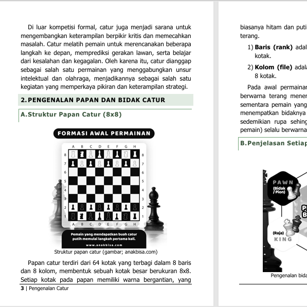 * Pengenalan papan dan bidak catur