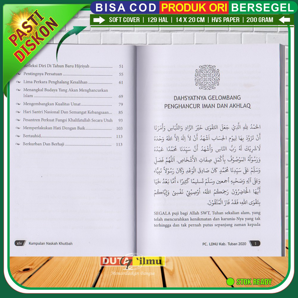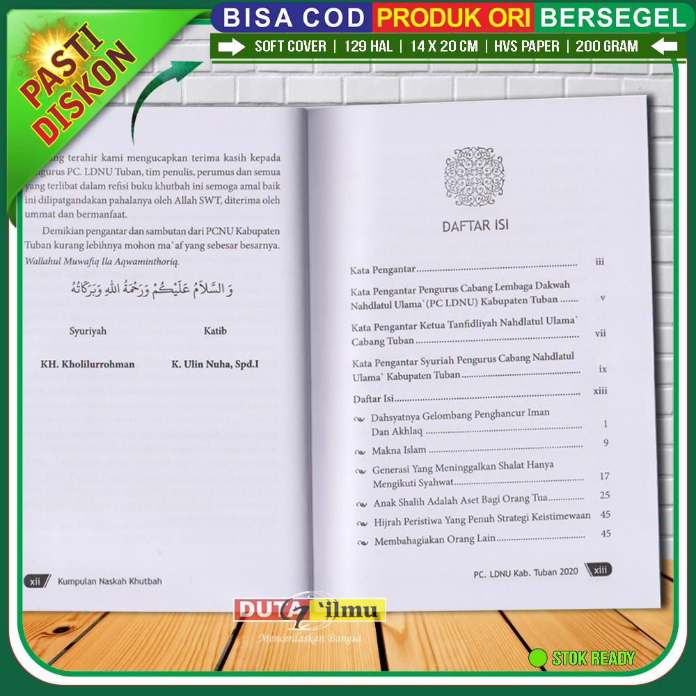 Disusun oleh Tim PCNU Kab. Tuban, buku ini menghadirkan materi khutbah yang aktual, relevan dengan kondisi masyarakat, serta dilengkapi dalil yang kuat dan penyampaian yang sistematis. Sangat membantu khatib dalam menyiapkan materi tanpa harus menyusun dari awal.