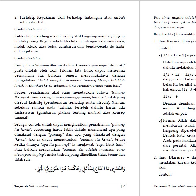 Ustadz Choiril Anwar, sebagai penerjemah, menyajikan terjemahan yang jernih, kontekstual, dan tetap setia pada makna asli, disertai penjelasan ringkas dan catatan kaki di beberapa bagian penting. Hal ini membuat pembaca tidak hanya membaca arti literal, tetapi juga memahami maksud dan filosofi di balik istilah-istilah logika Arab klasik.
