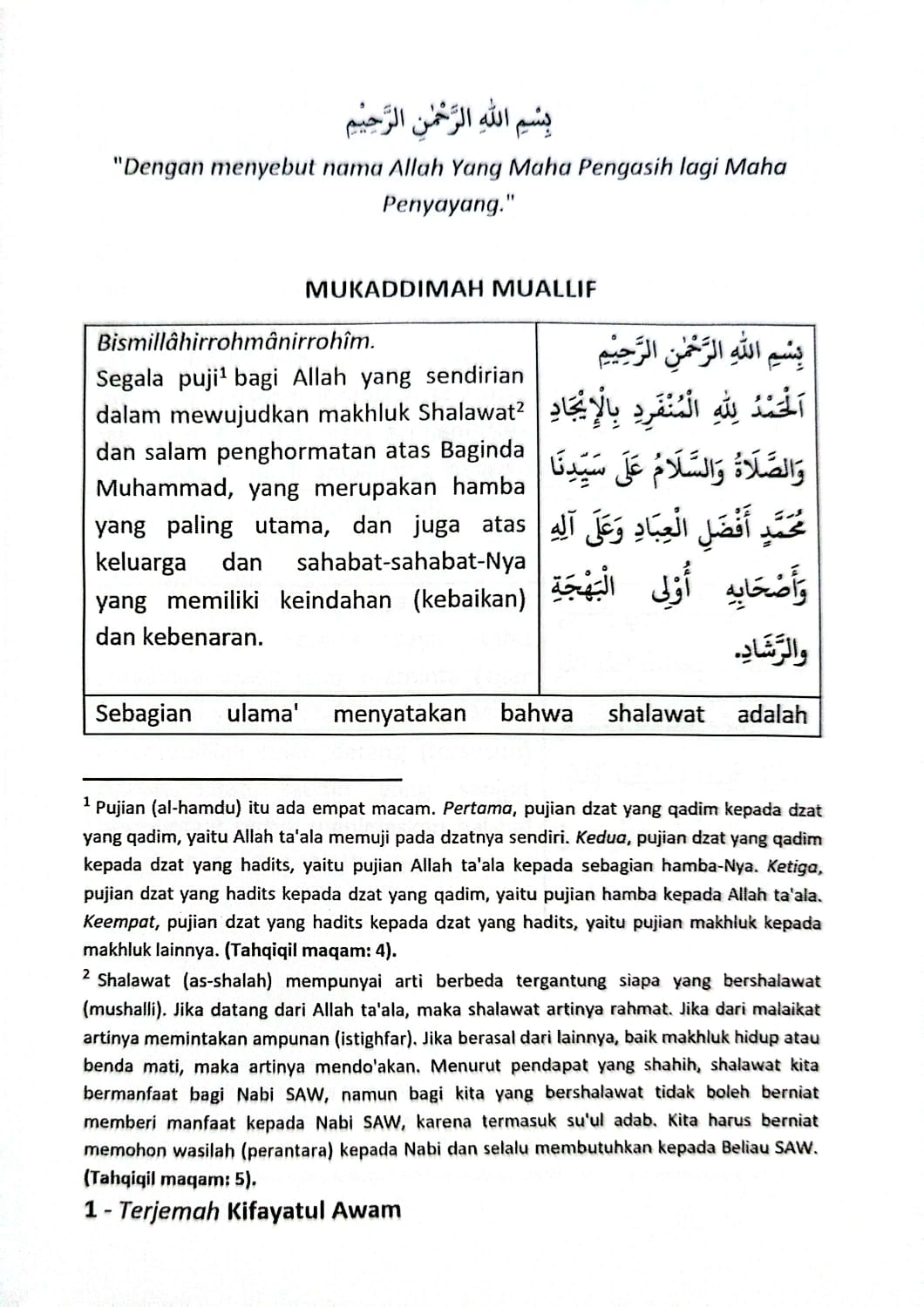 Dalam edisi dua bahasa ini, teks Arab asli disajikan berdampingan dengan terjemahan Bahasa Indonesia yang jelas, rapi, dan mudah dipahami. Penyajian seperti ini sangat membantu pembaca untuk memahami makna teks sekaligus memperdalam kemampuan membaca kitab kuning secara bertahap. Terjemahan yang disusun secara sistematis membuatnya cocok untuk pelajar, santri, maupun pembaca umum yang ingin memperkuat pemahaman dasar tentang aqidah Islam.