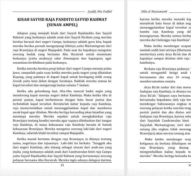 Buku ini merupakan terjemahan dari Kitab Ahlal Musamaroh karya ulama besar Kyai Abu Fadhol Senori yang membahas sejarah, silsilah, serta perjalanan dakwah para wali dalam menyebarkan Islam. Kitab ini dikenal sebagai rujukan penting dalam mengenal nasab dan perjuangan para tokoh penyebar Islam, khususnya yang berkaitan dengan silsilah Sepuluh Wali.