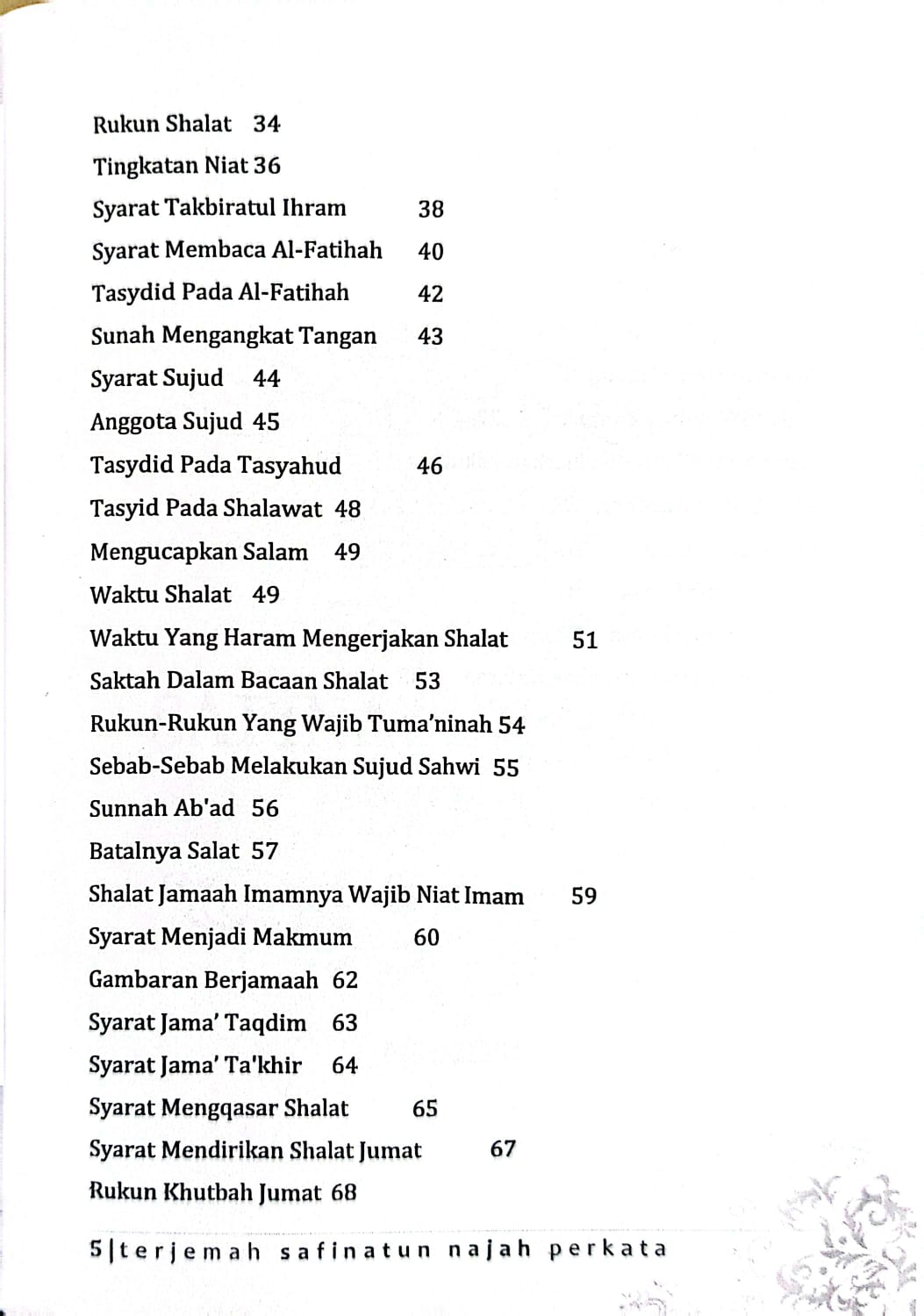 Terjemah Kitab Safinatun Najah Perkata (Indonesia) merupakan rujukan penting dalam mempelajari dasar-dasar fiqih ibadah secara benar.
