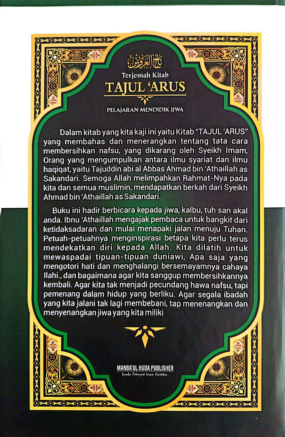 Ingin memperdalam ilmu tasawuf dan memperbaiki diri dari dalam? Terjemah Kitab Tajul ‘Arus hadir sebagai pedoman penting bagi siapa pun yang ingin menata hati, membersihkan jiwa, dan menempuh jalan spiritual yang benar.