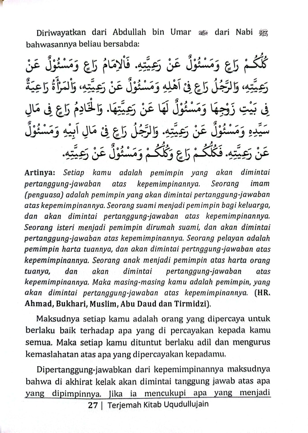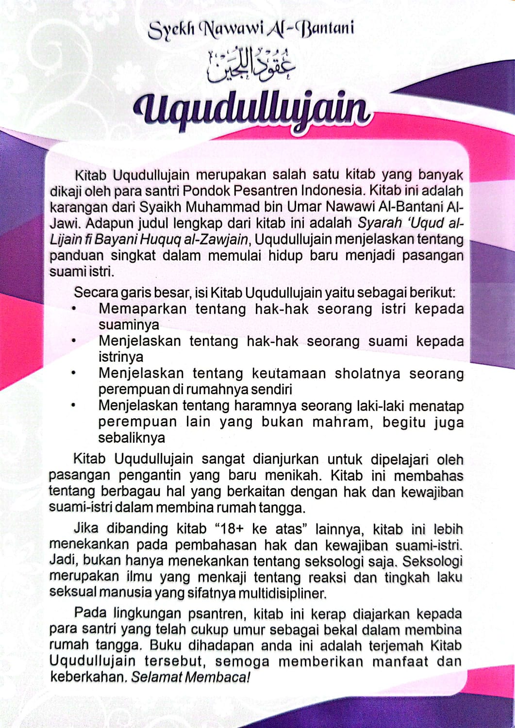 Terjemah Kitab Uqudullujain merupakan salah satu karya penting dari ulama besar Nusantara, Syaikh Nawawi al-Bantani, salah satu tokoh yang memiliki pengaruh luas dalam tradisi keilmuan Islam, khususnya di bidang akhlak dan rumah tangga. Kitab ini membahas tuntunan dan etika dalam kehidupan keluarga Muslim, mulai dari adab suami istri, tanggung jawab masing-masing pihak, hingga prinsip-prinsip keharmonisan rumah tangga dalam perspektif syariat.